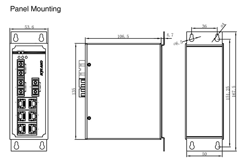| 3M6T | 3x100Base-FX, multi mode fiber ports; 6x10/100Base-T(X) RJ45 ports |
